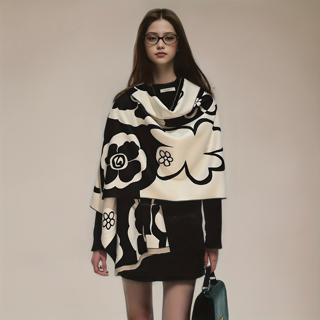 Stylish Camellia Warm Scarf, Multifunctional Women'S Graceful Neck Wrap Shawl, Perfect for Winter Activities, Trendy & Comfortable